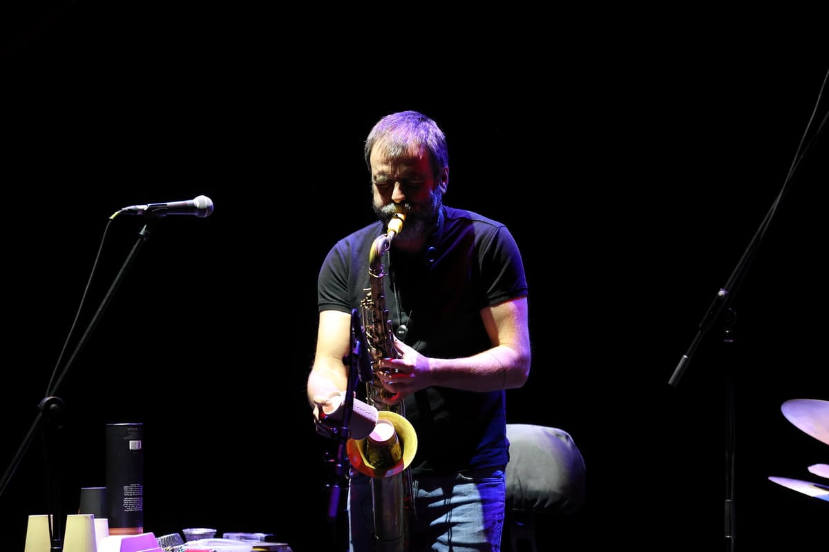 El concierto empezó a escobazos, literalmente. Andy Moor empezó a aporrear y a barrer las cuerdas de su guitarra con la cabeza de un cepillo, dando golpecitos al cuerpo de su instrumento con las partes de madera, produciendo ruidos y marañas acústicas, en muchos casos insospechadas, en otras, poco agradables. La batería acompañaba con percusiones secas y cortantes, mientras el saxofón de Albert Cirera jugaba con el mute que provocaba usando vasos de papel y moldes de aluminio.