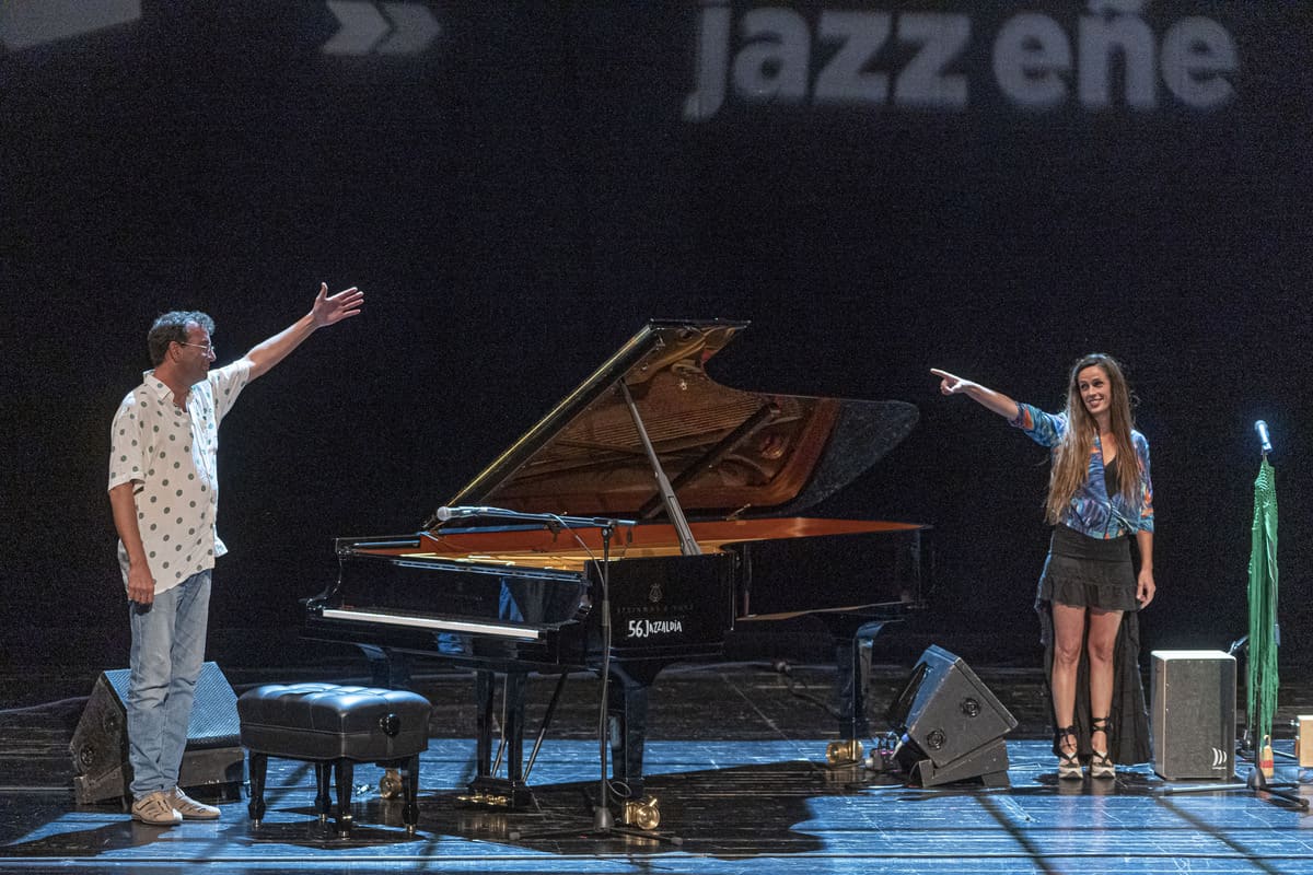 Los ya mencionados Manolo y Curra son, en realidad, el pianista gaditano Javier Galiana y la artista chiclanera María “La Mónica”. Si bien esta propuesta fue acogida con cierto recelo por el público, ofrecieron un espectáculo divertido, virtuoso y ciertamente entretenido. La concepción de su propuesta, “A flor de piel”, es más teatral que musical, planteada como una improvisación meticulosamente orquestada en la que la voz con aire flamenco es la gran protagonista y en el que se sumergen en los diferentes palos flamencos desde una perspectiva divertida y original, ahondando también en el baile, la percusión y, obviamente, el jazz. Puede que no sea jazz desde una perspectiva ortodoxa, tampoco flamenco, pero sí es una música nueva, entretenida y de gran calidad.