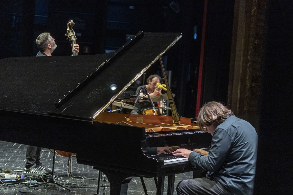La segunda actuación de la mañana fue, sin lugar a dudas, la más interesante y original de la edición. Sumrrá cautivó a todo el teatro Victoria Eugenia, al que, tras finalizar, puso en pie varias veces. El veterano trío gallego formado por Xacobe Martínez al contrabajo, Manuel Gutiérrez al piano y “Lar” Legido a la batería presentó en San Sebastián su último álbum “7 Visións”, un trabajo reflexivo lleno de fuerza y creatividad. El grupo comenzó con una energía arrolladora, desplegando recursos únicos en su música, convirtiendo a esta en una auténtica experiencia sonora, sumergiéndose en sonoridades y efectos, ofreciendo al público un espectáculo no de jazz, sino de música en su expresión máxima. La amplia trayectoria de Sumrrá se sintetiza en este nuevo trabajo, que se puede definir en personalidad, poderío y buen gusto.