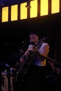 El escenario nunca permanecía quieto: unos subían y otros bajaban. El primero en subir fue el músico Antonio Niño. Él acompañó a la cantante al interpretar una canción de la artista Maro. Entre ellos dos existía una complicidad, era un diálogo entre dos guitarras al que se unía una voz. Mientras ellos dos interpretaban, el resto de instrumentos se encontraban fuera del escenario para dar un momento de luz a los dos intérpretes. La otra artista invitada era Adriana Proenza, esta colaboración fue completamente diferente a la anterior. Ella subió al escenario donde se encontraban todos los músicos. Adriana cantó a dúo con Mery “Volver”. Juntas mostraron su gran técnica vocal a través de sus giros vocales. Las dos disponen de un buen control de aire y de voz, tienen mucha agilidad vocal. Además de las colaboraciones, Mery Sanz bajó del escenario dos veces. Una para cantar junto a la guitarrista, entre un círculo creado por el público. La segunda vez que la cantante abandonó el escenario era en la parte instrumental de un tema en el que ella no cantaba, se apartó para que el público direccionara la mirada y la escucha atenta sólo en los instrumentos.