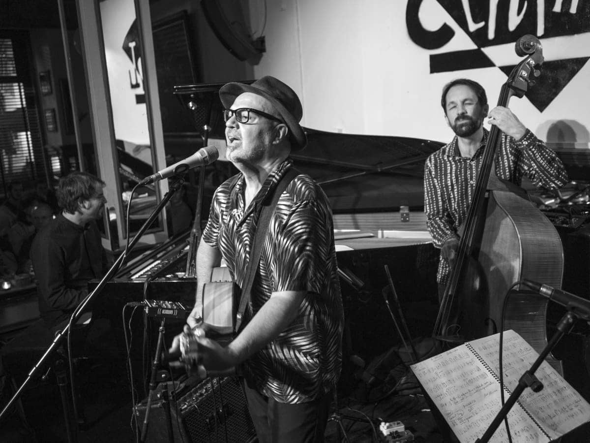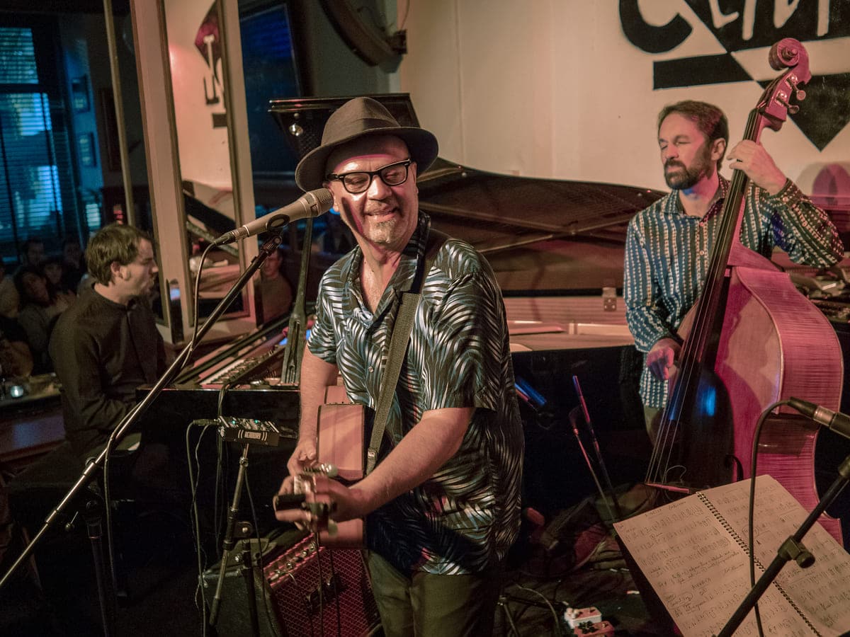 Los conciertos en el Café Central no son como en los teatros. No hay una voz en off que te diga que debes apagar tu teléfono, ni se deja en oscuro al público, como tampoco se prohíbe comer o beber durante el espectáculo. En los conciertos del Café Central se puede hablar, comentar, reír, y hasta casi bailar. Si tomas notas para una reseña, has de hacerlo a la luz de las velas que descansan en cada mesa y, si tienes la suerte de sentarte delante de las columnas, puedes ver directamente a los músicos. Si la situación no es tan favorecedora, habrás de buscarlos en los miles de espejos que recubren las paredes del establecimiento. Esto último tiene su parte mística ya que, así como se reflejan los rostros y gestos de quienes tocan en el escenario, también su música nos llega a través del espejo. Cuando la escuchamos, es como si hubiera pasado través de un filtro, como si la memoria de otras músicas, impregnadas en las paredes del café, hubiera bañado las notas nuevas y les hubiera dejado una nostalgia, una saudade, un cálido abrazo, con el que alcanzarnos.