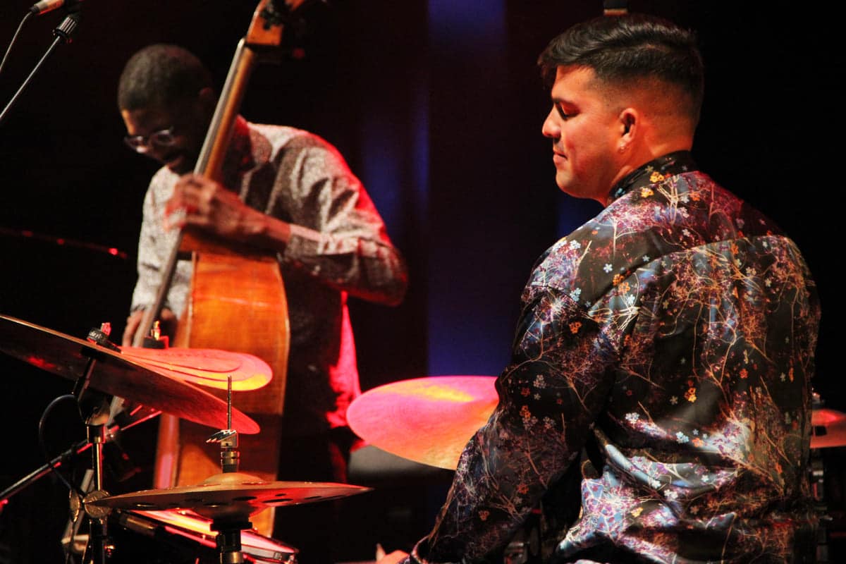 “Travesuras” anunciaba el final del concierto. Aquí el Negrón demostró por qué es considerado uno de los contrabajistas más influyentes del panorama jazz nacional e internacional. Su extensa introducción fue una lección de amor a la música y al contrabajo, en la que no solo demostró su templada sabiduría y conocimiento del instrumento, sino que también supo embrujar al público. Maravillosa interpretación que dio paso a las cuerdas muteadas del piano de Daniel y a los adornos percutivos, precisos, de Michael. Tras esas melodías iniciales, juguetonas y desde luego traviesas, se siguió una línea melódica más oscura que conducía a los coros de Daniel con voces distorsionadas repletas de efectos y ecos agudos procedentes de su pequeño teclado, situado en la parte superior del piano de cola.