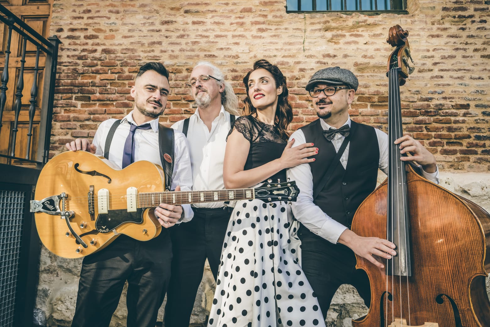 Una formación de cinco músicos que combina energía, elegancia y swing al más puro estilo Django Reinhardt. El espectáculo incluye una exhibición de baile swing a cargo de Danilo Studio de Danza, seguida de una sesión participativa para todo el público con los grupos Palencia Swing y Lindy Monkeys Valladolid.